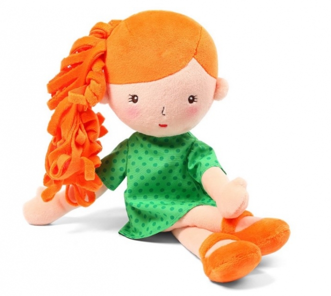 Panenka je z příjemného a měkkého materiálu s výrazným účesem. Dává pocit bezpečí, je ideální pro první hračku.