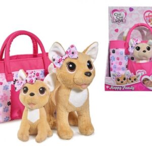 Plyšový pejsek čivava se štěnátkem v trendy tašce. Velikost pejsků 20 a 14 cm.