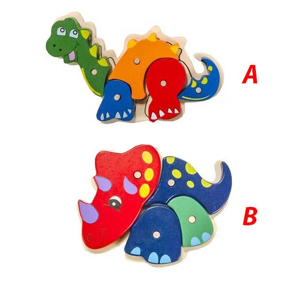 Baby Dřevěná skládačka Dinosaurus 20 cm, 2 druhy, 5 – 6 dílů, kvalitní materiály i zpracování.