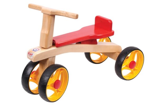 Senzační odrážedlo s dřevěnou konstrukcí a plastovými kolečky.