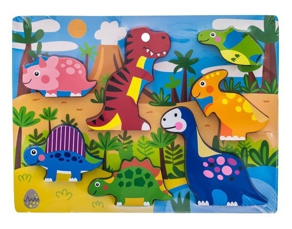 Dřevěné zábavné puzzle vkládací Euro Baby – Dinosauři