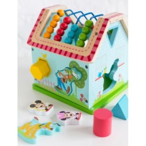Součástí domečku jsou tvary pro vkládání, horní počítadlo a oblíbené postavičky Mickeyho, Minnie, Donalda, Pluta a Goofyho, dají se do domečku vkládat nebo si děti s nimi mohou jen tak hrát.