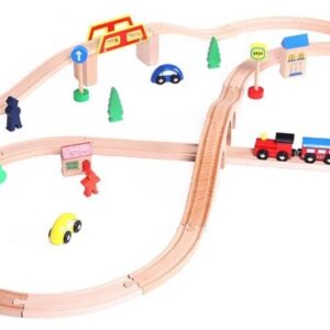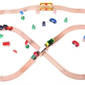 Dřevěná vláčkodráha ECO TOYS – 49 dílků.