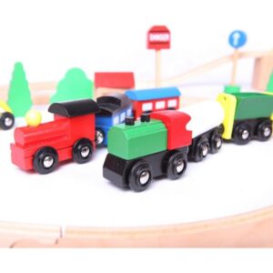 Jednotlivé dílky jsou kompatibilní i s vláčkodráhami jiných značek: Brio, IKEA, ELC, Little Steps, Eichhorn, Woodyland, Tesco, Carousel. Vhodné pro děti od 3 let.