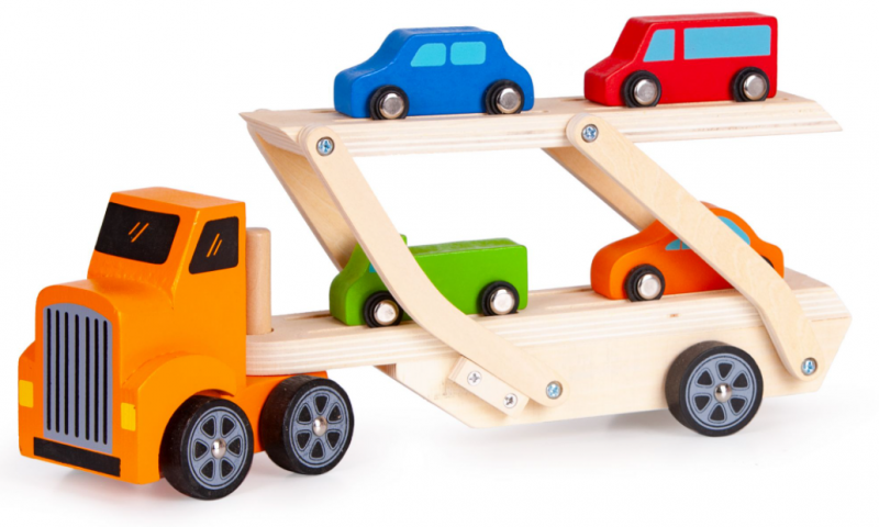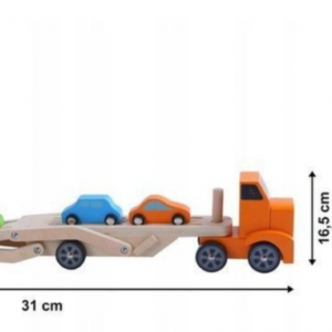 ECO TOYS Dřevěný tahač s návěsem pro 4 autíčka