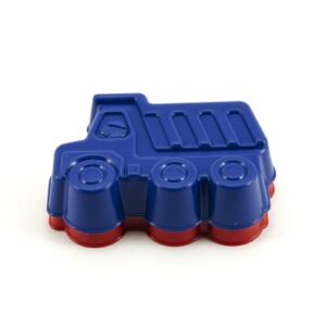 Plastové bábovky na písek ve tvaru dopravních prostředků.