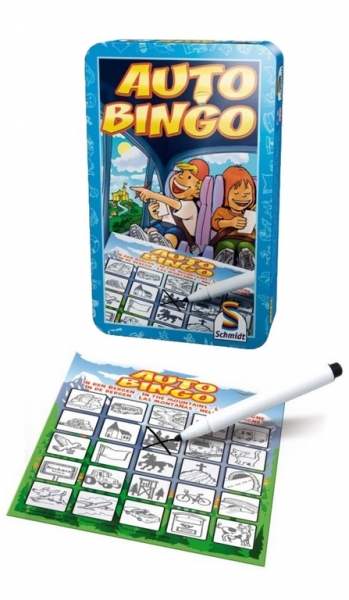 Auto Bingo je uloženo v praktické kovové krabičce, která je skladná a nezabírá příliš mnoho prostoru.