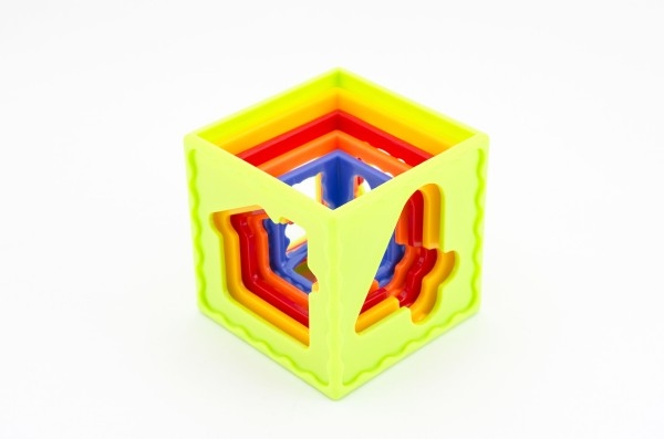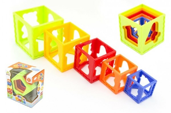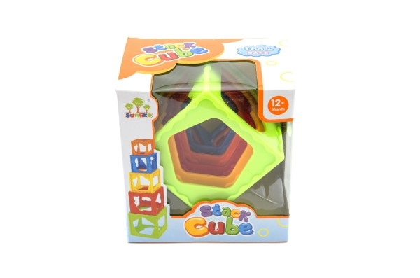 Kubus pyramida skládanka hranatá plast 5ks v krabičce 15x16x10cm 12m+