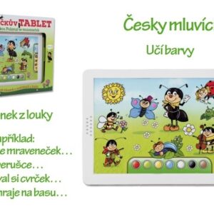 Dotykový tablet, se kterým se děti naučí barvy, říkanky o zvířátkách z louky a poslechnou si známou básničku Polámal se mraveneček. Hračku uvedete do provozu dotykem prstu na kulaté tlačítko a dále používáte dotyků prstem ke zvolení funkcí: výuka barev, najdi, Mravenečkovi kamarádi (pod kterými se schovávají říkanky) a poslech básničky.
