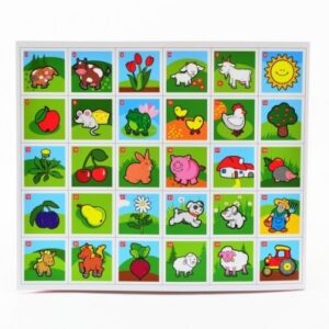Papírové pexeso obsahuje 32 dvojic s veselými obrázky.