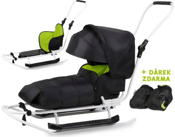 Sáňky s kompletním vybavením + rukávník zdarma – černý/zelený