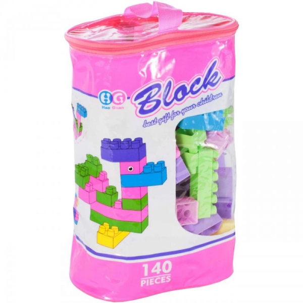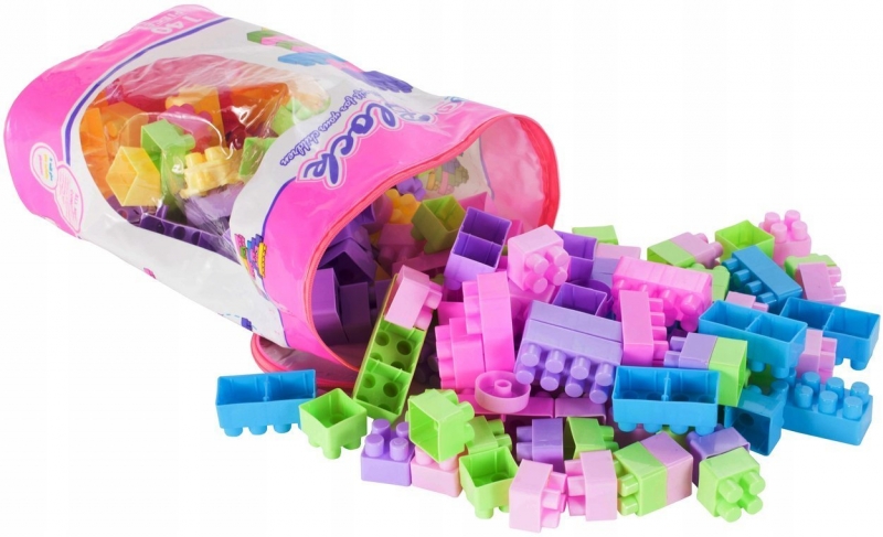Dětská plastová stavebnice obsahuje 140 barevných dílků, které můžeš různě sestavovat.