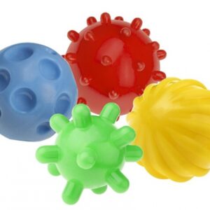Míčky jsou ideální pro jemnou a příjemnou masáž. Při držení míčku nebo šlapáním na něj bosými nožičkami stimuluje rozvoj smyslů dítěte a pomáhá rozvoji rovnováhy.